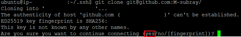 - fingerprint란 해시함수에 공개키를 적용시켜 얻은 '지문'으로 선택지에서 fingerprint를 선택할 경우 서로의 '지문'을 대조해 공개키의 일관성이 유지되고 있는지 직접확인한 다음 clone 할 수 있게 해준다. (서로 같은 공개키 즉, id_rsa.pub를 갖고 있기 때문에 '지문'의 대조가 가능함) [본문으로]