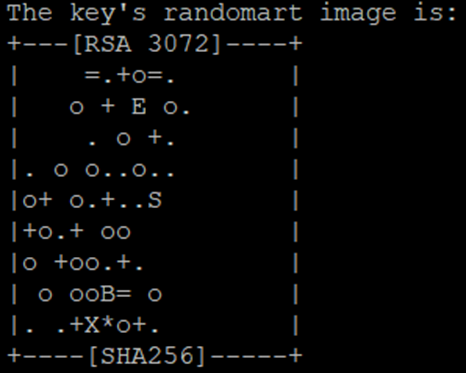 - 생성과 동시에 이렇게 randomart 키가 나타나게 된다. 이는 복잡한 키를 사용자가 편하게 알아봐 키의 무결성을 확인하기 위해 사용된다.3
