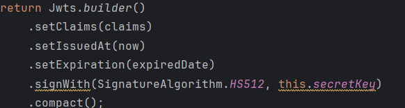 GPT 한테 물어보니 보안상의 이유로 signWith(SignatureAlgorithm, Key) 요 메서드는 잘 사용 되지 않는 단다.